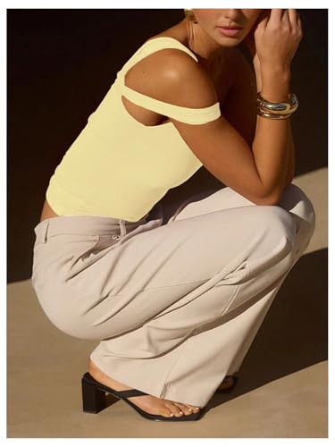 • Feature: Cold Shoulder, Asymmetrical Neck, Sleeveless, Slim Fit, Solid, Tank Tops for Women