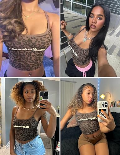 Aelfric Eden Women Halter Tank Tops Leopard Print Cami Top Crop Camisole Y2k Trendy Going Out Tops 5