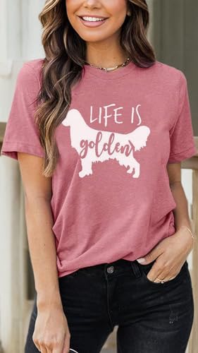 Life is Golden Shirt for Women Cute Dog Mom Graphic Short Sleeve Casual Mama Gifts T-Shirt 7