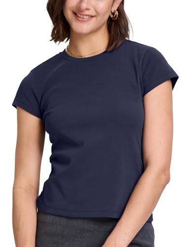 HOT ! FAIABLE Short Sleeve Shirts for Women Fitted Basic Summer Tops Crew Neck T Shirts