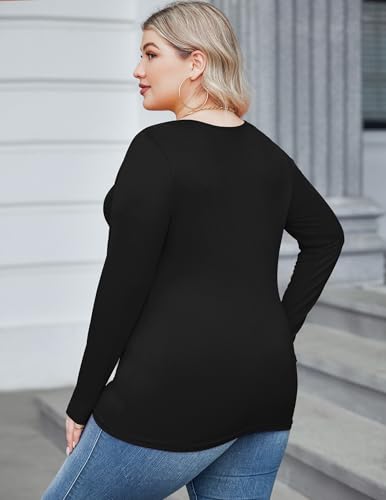IN'VOLAND Women's Plus Size Long Sleeve Shirts Scoop Neck Slim Fitted T Shirt Stretchy Bodycon Basic Tee Tops 3