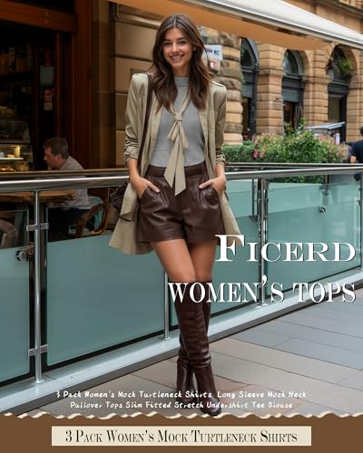 More information about Ficerd 3 Pack Women's Mock Turtleneck Shirts, Long Sleeve Mock Neck Pullover Tops Slim Fitted Stretch Undershirt Tee Blouse