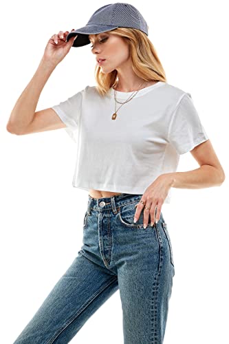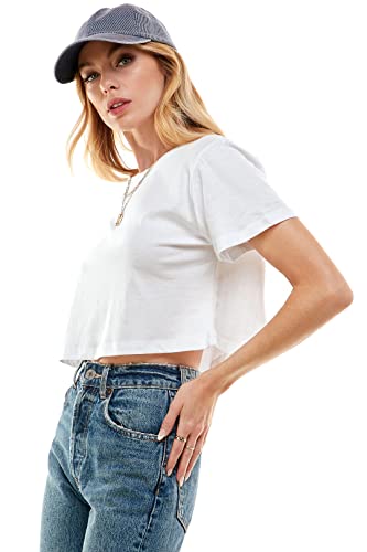 HOT ! Women's Boxy Crop Top Round Neck Short Sleeve Casual 100% Cotton Cropped Tee T-Shirt