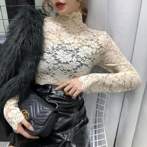 More information about Women's Floral Lace Top Long Sleeve Mock See Through Mesh Underwear Blouse Shirt S-L