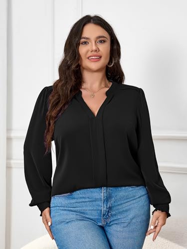 • Designs:Plus size blouses for women featured with a v neckline, and long sleeves with smocked cuffs,loose fit,solid color design.this plus size business casual blouses and tops for women makes you look more intellectual and elegant