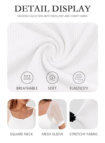 • Womens summer tops, mesh short sleeve, square neck, swiss dot, going out tops, ribbed, Polka Dot, slim-fitted shirts, Super cute & delicate top