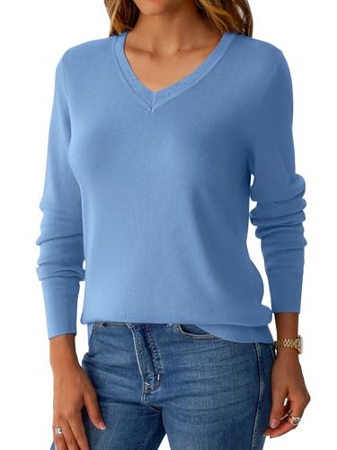 More information about Women's V Neck Sweater Wool Blend Lightweight Soft Pullover Long Sleeve Tops Business Casual Fall Outfits 2025 Trendy