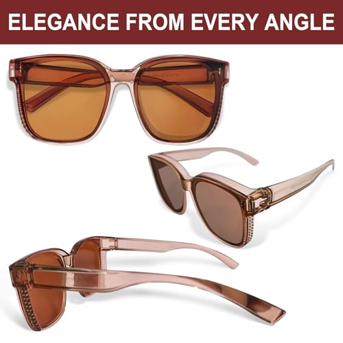 • FIT OVER GLASSES: Specifically designed for those who wear prescription glasses. Outdoors in strong sunlight allows you to have glasses and sunglasses at the same time. There are grooves on the inside of the temples of the sunglasses to put the glasses in. Large square frames will fit most shapes of glasses. These sunglasses can surely also be worn alone, classic oversized, stylish and practical