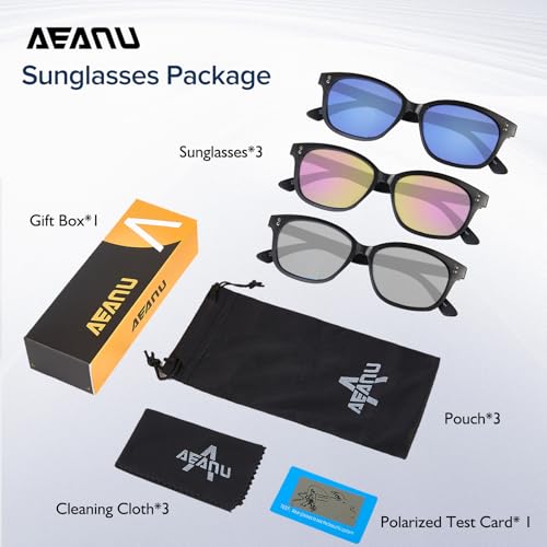 3-Pack Polarized Sunglasses – UV400 Color Mirror Lens for Teens Young Women,Lightweight Rectangular Frame Small Faces 3