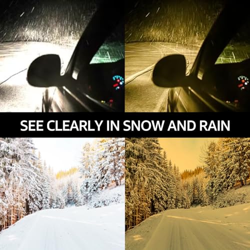 • Lightweight and Comfortable: Made of high-quality polycarbonate material, the glasses frame is sturdy and lightweight, making your nose and ears feel comfortable when wearing it, allowing you to use it all day without any burden. This stylish yellow night driving glasses is unisex, you can share it with your lover, parents and friends.