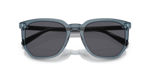 • FRAME FEATURES: HC8384U Universal Fit sunglasses feature a square, transparent blue frame with geometric edges and blue lenses.
