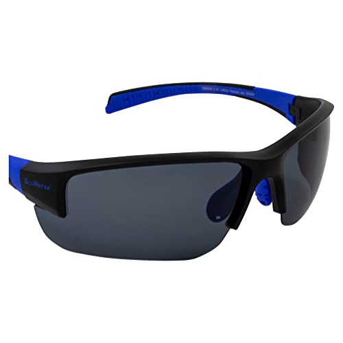 • Sporting a semi-rimless aerodynamic frame design & double-injected blue rubber on temples, these fishing sunglasses protect eyes without compromising style.
