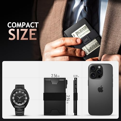 Slim Card Holder Wallet for Men, RFID Blocking Minimalist Mens Wallet, Metal Pop Up Wallet with Cash Band (Black) 6