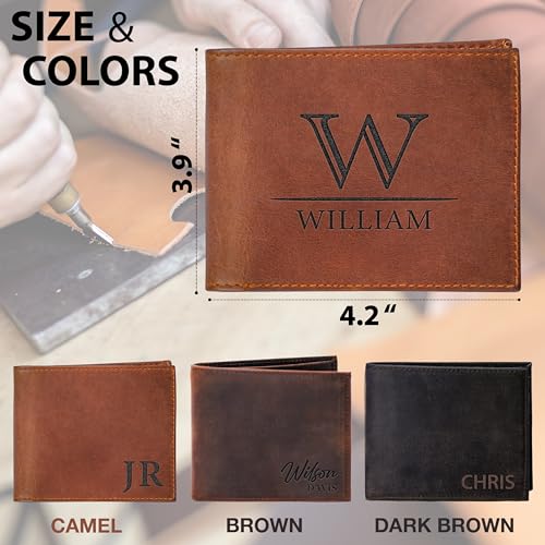 Custom Wallet for Men, Personalized Men Leather Wallet, Fathers Day, Christmas, Valentines & Anniversary, Gift for Dad, Him, Grandpa, Husband, Birthday 1