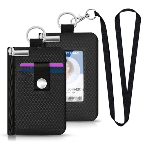 Minimalist RFID Blocking Small Wallet with ID Window,WaterResistant Zip Id Case Wallet with Lanyard Keychain for Cards,Cash,Travel,Women,Men (Black) 1