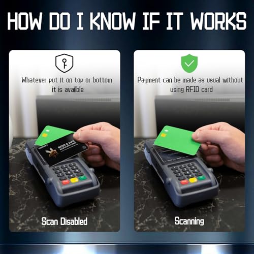 • Universal Compatibility:Designed to work with all RFID and NFC cards, including credit/debit cards, ID cards, and access cards. Simply place this card in your wallet alongside your other cards (within 1 inch) for comprehensive protection.