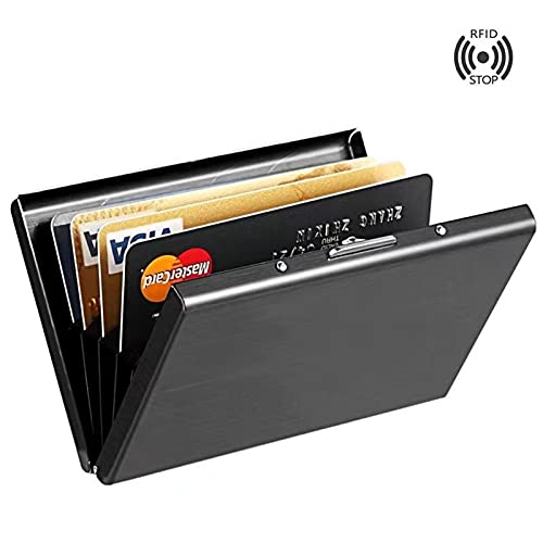 More information about RFID BlockingStainless Steel Credit Card Holder, Men Women Metal Slim Wallet For Driver's License, ID Cards, Credit Cards, Or Business Cards (Black 10 grid)