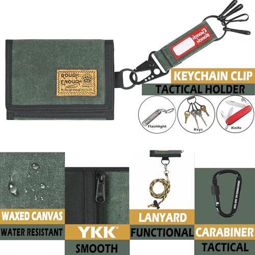 Rough Enough Boys Wallet for Teen Boys Kids Men Tactical Army Green Waxed Canvas with Keychain Neck Lanyard 1