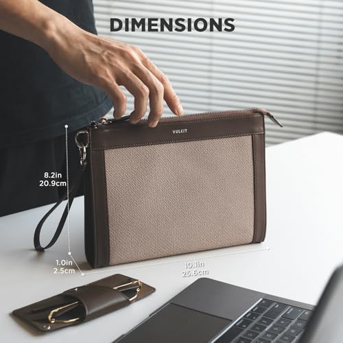 More information about VULKIT Clutch Bag for Men with Removable Glasses Case, Large Mens Wrist Band Wallet, Business Hand Bag, Mocha Beige