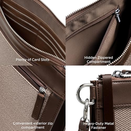 VULKIT Clutch Bag for Men with Removable Glasses Case, Large Mens Wrist Band Wallet, Business Hand Bag, Mocha Beige 1