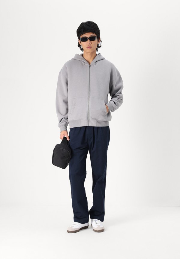 HOT ! Boxy Faux Shearling-Lined Zip-Up Hoodie - Hoodie - smoked pearl faux wash