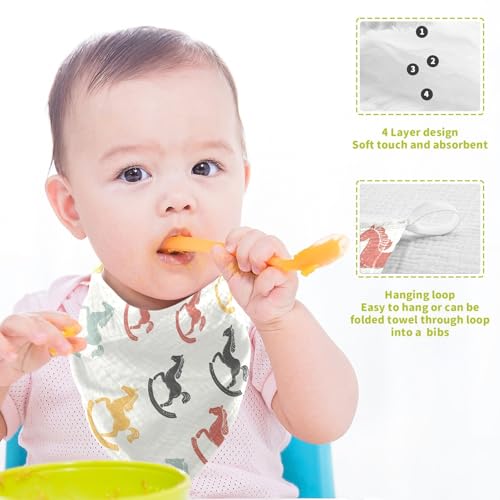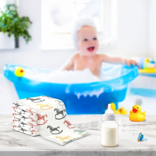 vvfelixl Cartoon Colorful Toy Rocking Horse Baby Burp Cloths Baby Muslin Washcloths for Boys Girls Cotton Babys Face Towel for Newborn Infants Soft and Absorbent 11.8 X 11.8 in, 5 Pack 2