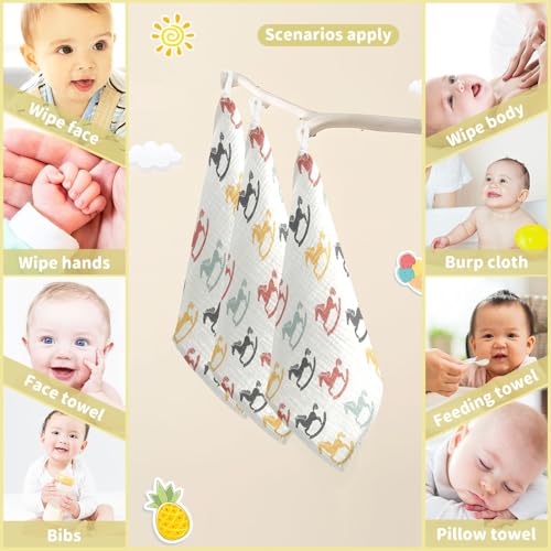 vvfelixl Cartoon Colorful Toy Rocking Horse Baby Burp Cloths Baby Muslin Washcloths for Boys Girls Cotton Babys Face Towel for Newborn Infants Soft and Absorbent 11.8 X 11.8 in, 5 Pack 6