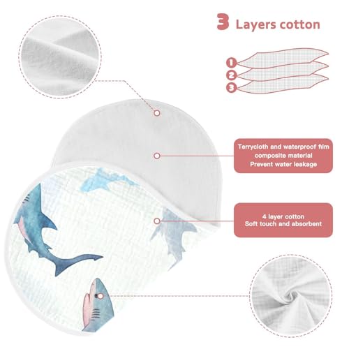 Muslin Burp Cloth for Baby 1PC Watercolor Sharks Super Absorbent Burping Cloths, Bibs for Newborn Boys Girls 3