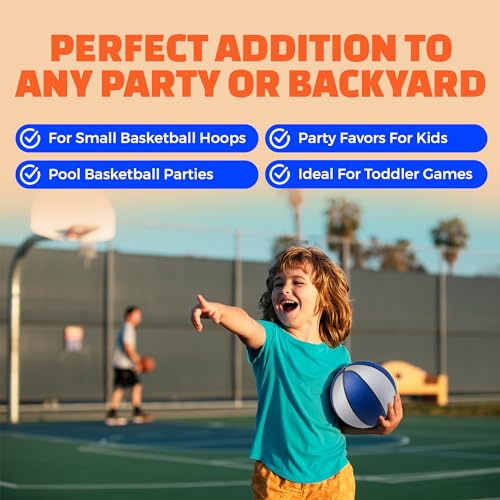 • 7 INCHES, ASSORTED COLORS: These Rubber Basketballs each measure 7 inches in diameter. They are large enough to dribble like a real basketball, but still small enough to use indoors with basketball arcade games, toddler basketball hoops, or even an over-the-door basketball hoop. Plus, they float and are perfect to play with during pool parties