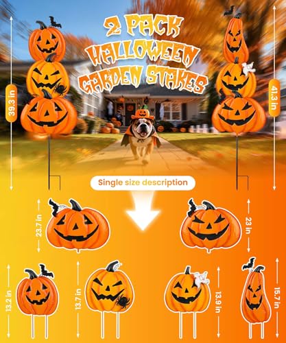 HOT ! 2 Pack Halloween Garden Stakes - Stacked Metal Pumpkins Jack-o-Lantern Lawn Decor, Scary Metal Yard Signs Stake Outdoor Decorative Pumpkin Home Lawn Pathway Decor