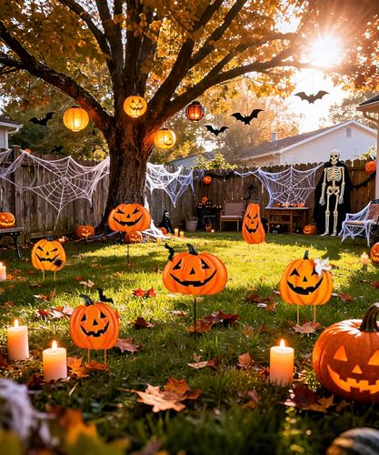 • For Yards That Stand Out: Whether lining a haunted house path, framing your fall porch, or decorating a trick-or-treat lawn, these stackable pumpkin yard stakes bring spooky charm and seasonal magic to any Halloween setup
