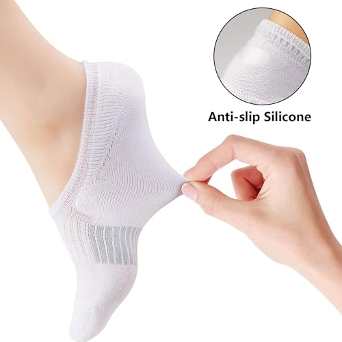 • Arch Support & Cushion Socks - Upgraded cushion sole covers the entire bottom of the no show socks. Provide maximum cushioning space for the foot, reducing friction in sports or daily activities. Proper compression of the arch will keep your arch safe and stable while reinforced heel and toe provide outstanding durability.