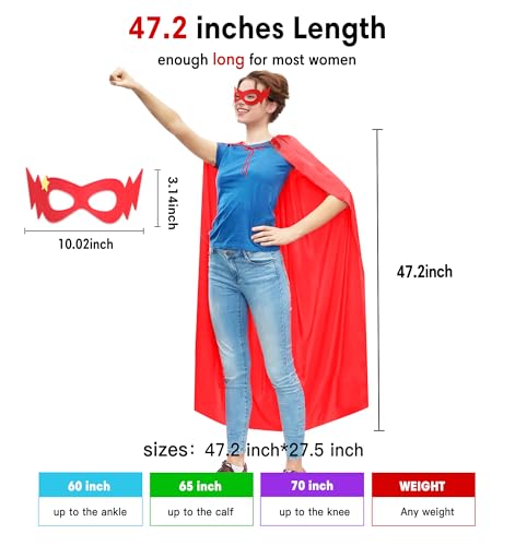 • 【Adult-Sized Superhero Capes and Masks】:★ Superhero Capes for Adults, measure 47.2" L x 27.5" W, designed for Adults / Teenager Superheroes. Recommended for age 13+; Star Superhero masks, with unique Design, more comfortable. Super Hero dress up cape and mask will RELIVE your Superheroes Dream.