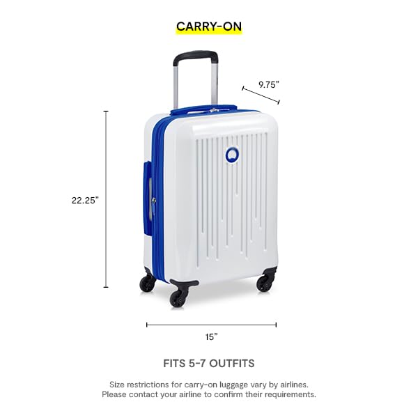 • STYLISH AND FUNCTIONAL: The Delsey Paris Christine collection marries function and fashion with its glossy white exterior, expandable zipper, and pops of color trim and details. This luggage is lightweight and made from ABS and polycarbonate to ensure it stays intact while traveling. The dimensions of this fashionable carry-on are 20"x7"x15" and it's perfect for short trips and weekend gateways.