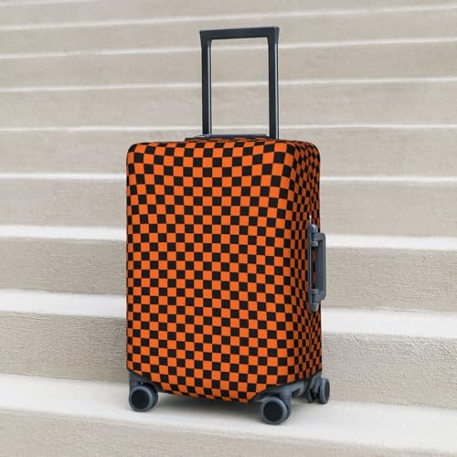 Orange And Black Chessboard Pattern Elastic Travel Luggage Covers Dustproof Scratch-Resistant Suitcase Protector Fit 22-24 Inch 1