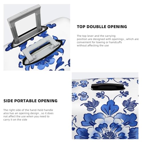 HOT ! Blue And White Orcelain Floral Elastic Travel Luggage Cover, Washable Spandex Suitcase Protector, Anti-Scratch Fits 18-32 Inch