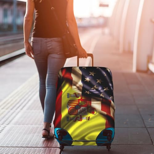 More information about Travel Luggage Cover Combined Spain And Usa Flag Fashion Washable Baggage Suitcase Protector Fit For Luggage Small