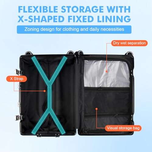 hard shell zipperless Carry On Luggage 22x14x9 Airline Approved, Aluminum Frame Suitcases With 360 Roller Spinner Wheels TSA Lock For Travel (blue, 20 inch), XLX02 7