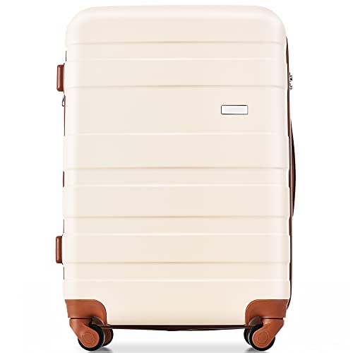 • 【3-Piece Hardshell Set】Includes 20”, 24”, and 28” lightweight ABS suitcases with a scratch-resistant textured finish in a stylish ivory and brown color combination.