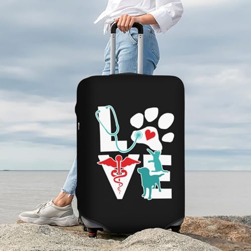 Veterinarian Love Cat and Dog Veterinary Travel Luggage Cover Suitcase Protector Fits 18-21 Inch Case(Black,S) 1