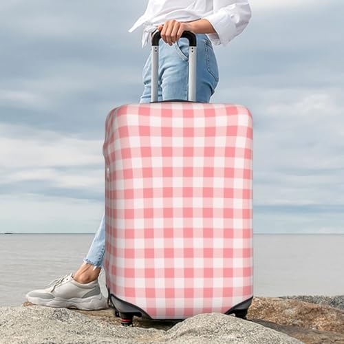 HOT ! Luggage Cover Protector - Square Pink White Plaid Print Suitcase Covers for Luggage Fit 25-28 Inch Suitcase