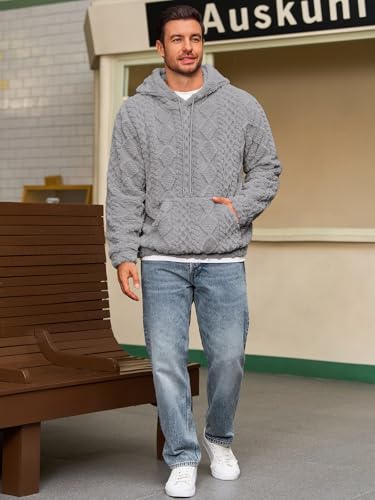 • Features: The men's casual fluffy sweatshirts are feature with kangaroo pocket, long sleeve, cable twisted, hooded collar with drawstring for added windproof effect. The cable textured and loose fit style create a unique and fashionable look