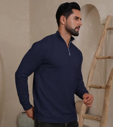 Mens Knit Pullover Sweater Quarter Zip Thermal Long Sleeve Slim Mock Neck Ribbed Thick Sweater 5