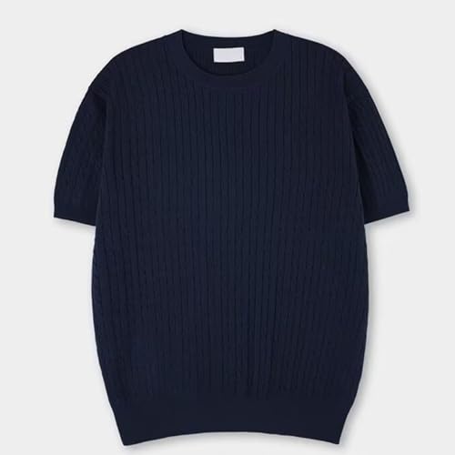 HOT ! Men's Plain Round Neck Cable Knit Tops, Men's Round Neck Solid Color Cable Short Sleeve Knit Top, Knit Sweater