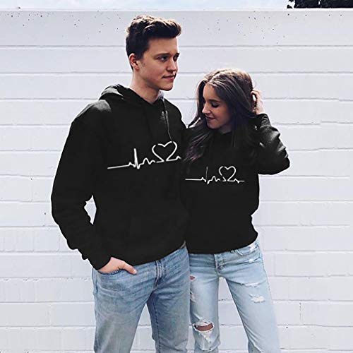 Hooded Sweater Valentine Day Couple Matching Lovers Heartbeat Signal Printing Pullover Fall Winter Pullover Top 5