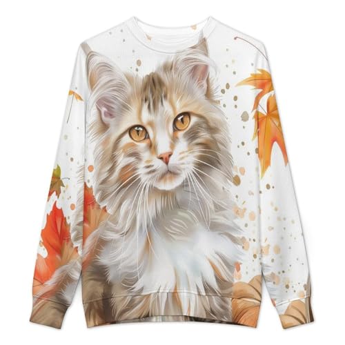 HOT ! Mens Crewneck Sweater Fall Cat Crew Neck Sweater Long Sleeve Pullover Sweaters