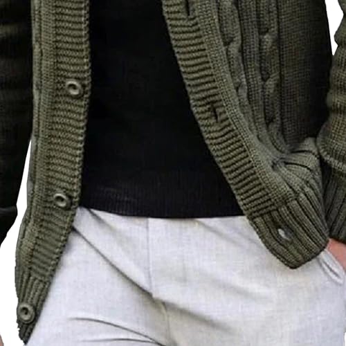 Mens Shawl Collar Cardigan Sweaters Long Sleeve Button Down Cable Knitted Sweater Slim Fit Casual Knitwear 4