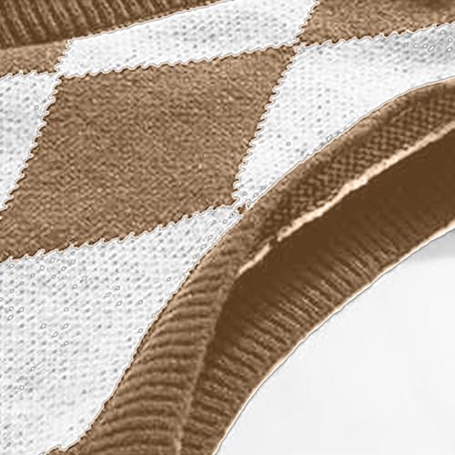 Cambkatl Men's Argyle Sweater Vest Button V Neck Fall Cardigan Casual Sleeveless Knitted Houndstooth Jumper Tops 7