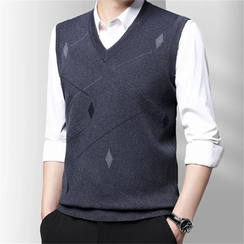 Men’S Thickened Warm V-Neck Knitted Sweater Vest Business Casual Sleeveless Pullover Tank Top 4