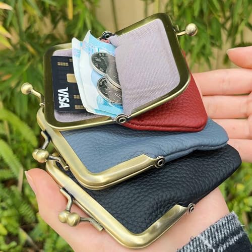 • Kiss Lock Closure:This small coin purse with clasp is made of sturdy and beautiful vintage hardware kiss lock, easy to open and close, close tightly. Chic and compact shape, vintage brushed hardware kiss lock and wide mouth design. It can hold coins, cash, keys, lipstick, earphones, bank cards, ID cards and other small items.
